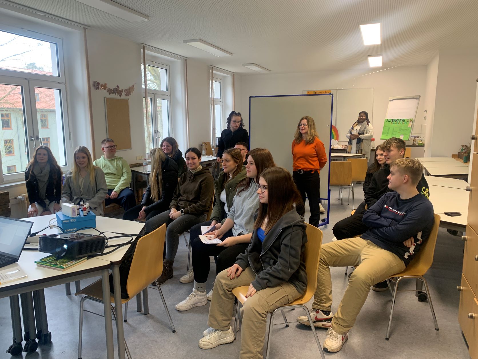 Im Anschluss an die Filmvorführung hatten unsere Schüler*innen die Möglichkeit, direkt mit Mo Asumang ins Gespräch zu kommen. Es war eine intensive und emotionale Begegnung: Fragen wurden gestellt, persönliche Erlebnisse geteilt – und Tränen sind geflossen. Die Themen, denen sich Frau Asumang in ihrer Arbeit stellt, sind belastend, teilweise erschütternd – und dennoch von größter gesellschaftlicher Relevanz.